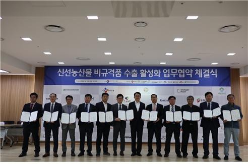 농림축산식품부(장관 김현수, 이하 농식품부)는 2020년 5월 15일 농산물 비규격품을 원료로 한 가공식품 수출을 촉진하기 위해 한국농수산식품유통공사(aT)·4개 품목 생산자 대표 수출회사(코파(KOPA, 파프리카), 케이베리(K-berry, 딸기), 케이그레이프(K-grape, 포도), 케이머쉬(K-mush, 버섯))·가공 및 해외 진출 프랜차이즈 업체 등 11개사가 참여하는 다자간 업무협약을 체결하였다.