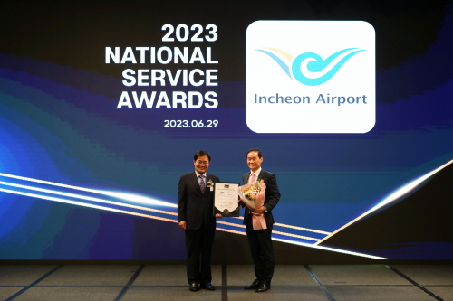 인천국제공항공사는 29일 오전 서울 소재 JW메리어트 동대문 스퀘어 호텔에서 산업정책연구원 주관으로 개최된 '2023 국가서비스대상' 시상식에서 공항 물류 부문 대상을 2년 연속 수상했다고 밝혔다.