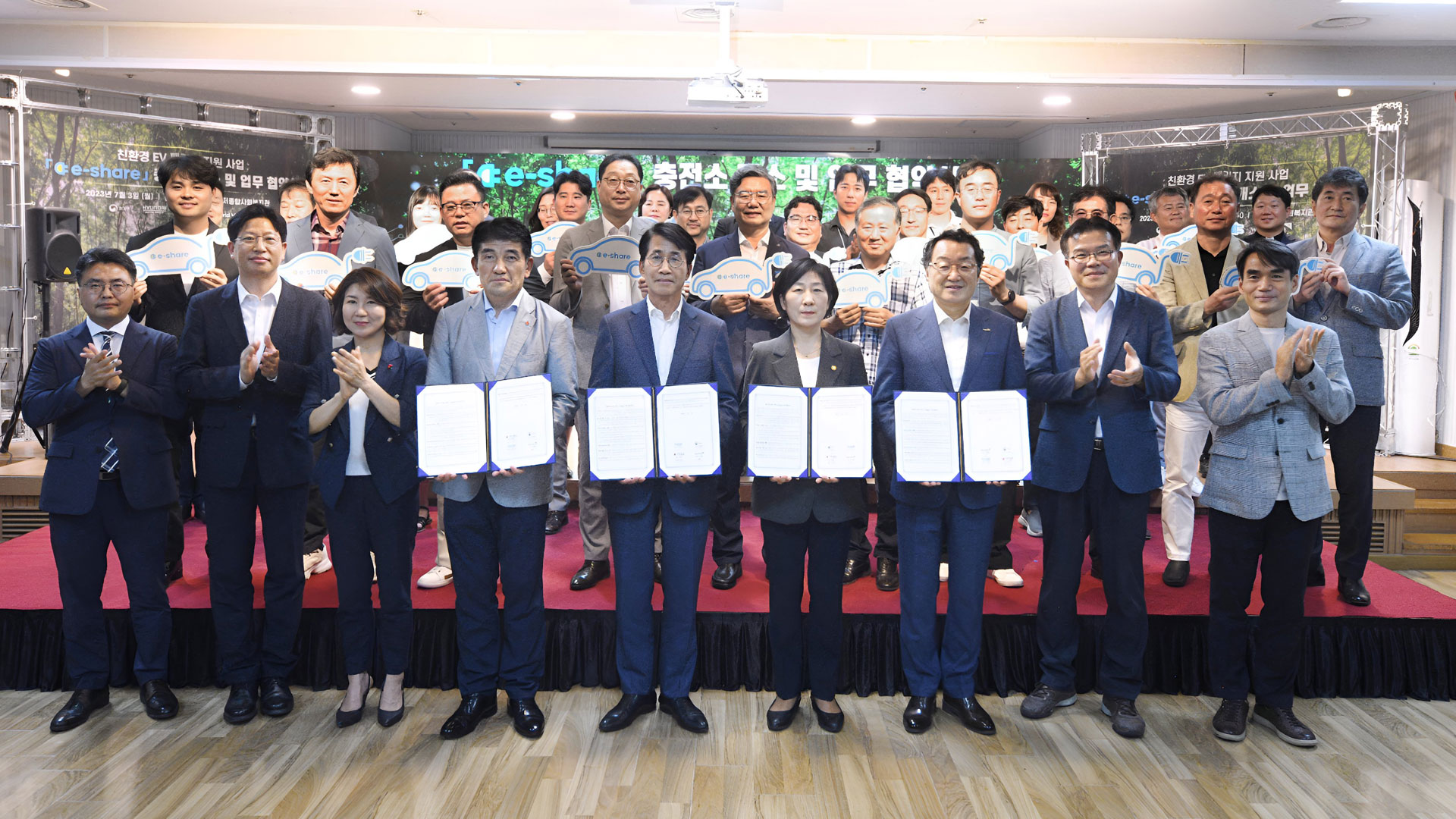 현대자동차그룹 등은 이번 업무협약을 통해 ‘E-share’ 프로그램 운영을 본격화한다는 방침이며, 시범 사업에서 지원 대상으로 선정됐던 대전 관저종합사회복지관의 충전소 개소에 맞춰 협약식을 진행함으로써 지역 사회 지원을 위한 의지를 확고히 했다.