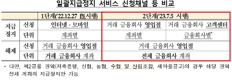 지금까지는 온라인을 통해서만 일괄지급정지 서비스 신청을 받았다.