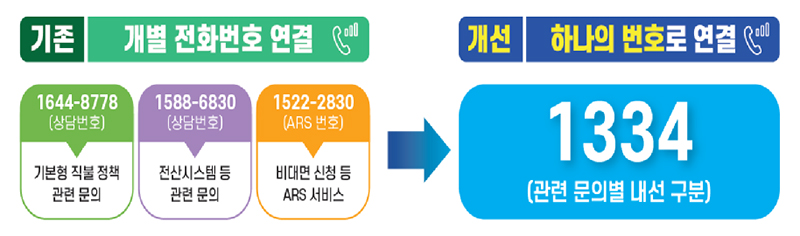 앞으로는 농업인이 기존의 8자리 개별번호가 아닌 ‘1334’ 4자리 번호로 전화를 걸면 원하는 서비스를 제공받을 수 있다.