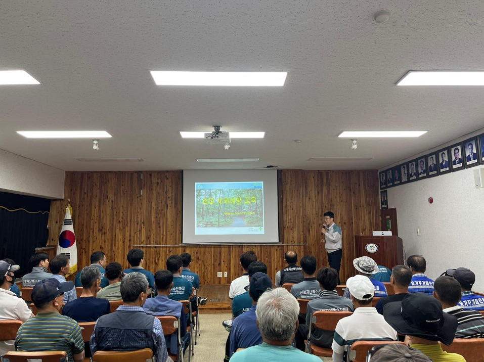 이번 교육에는 여름철 폭염 발생에 따른 안전관리 요령과 여름철 독충류(벌, 진드기, 뱀 등) 예방법 교육, 풀베기사업 추진에 따른 장비(예초기 등) 사용방법 교육 및 장비별 안전사고 응급처치 요령 공유 등 여름철 발생할 수 있는 계절별 맞춤형 안전교육을 실시하여 더욱 안전한 산림사업장 조성 및 안전사고 절감 효과를 기대하였다.