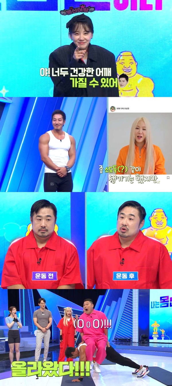 그런가 하면 트레이너 몸신은 100kg이 넘는 강호동을 등에 앉히고 푸시업에 성공하는 괴력을 보여주며 강철 어깨를 증명한다.