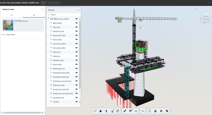 BIM 시뮬레이션을 활용해 시공 전에 발생할 수 있는 위험요소를 찾아내고, 이를 통해 위험요소 사전 제거 후 시공 완료된 구조물은 드론 및 레이저 스캐너로 3차원 데이터를 확보하여 BIM 모델과 비교해 봄으로써 초정밀시공을 실현한다.