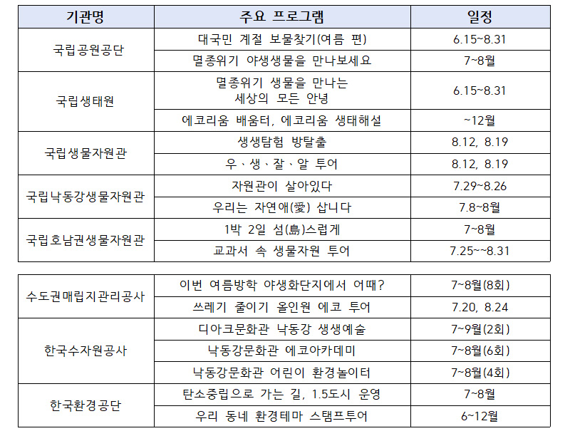 환경부, 8개 소속·산하기관과 친환경 여름 체험 과정 마련…다음달 말까지 운영