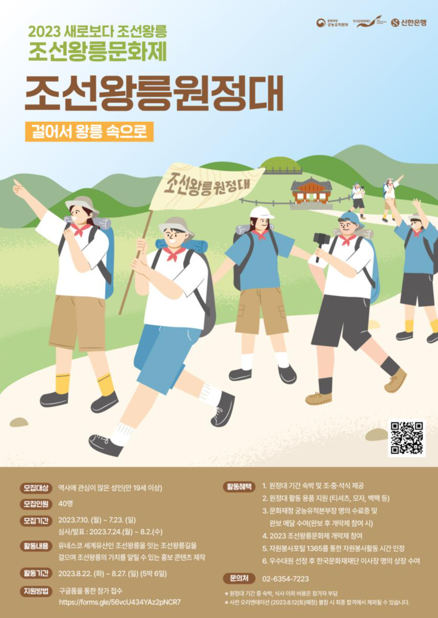 문화재청 궁능유적본부는 한국문화재재단과 함께 8월 22일부터 27일까지 6일간 「2023년 조선왕릉문화제」의 사전 특별 프로그램으로 ‘조선왕릉원정대’를 진행한다.