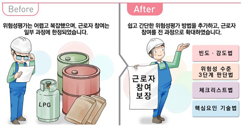 지난 5월 22일부터는 위험성평가 모든 과정에 근로자의 참여가 보장되는 새로운 위험성평가를 시행하고 있다.