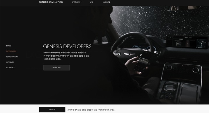 커넥티드카 서비스 및 상품을 개발하고자 하는 사업자는 제네시스 디벨로퍼스 홈페이지에 가입 후 데이터 사용처와 목적을 등록하면 승인을 거쳐 API를 제공 받을 수 있다.