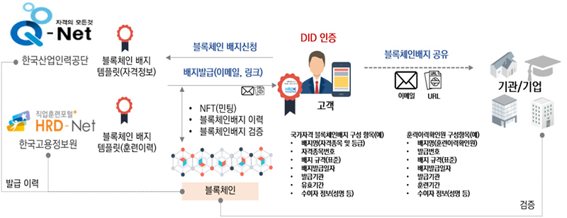 이에 공단은 보유한 국가자격 취득정보와 한국고용정보원의 직업훈련 이력 정보를 연말까지 디지털 배지로 구현하고 정부 모바일 신분증 전자지갑 및 민간 플랫폼 전자지갑에도 연계할 계획이다.