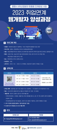 교육에는 공모로 선정한 한양대 교수진이 참여해 이론과 실기 집중교육을 진행한다. 또 한양대 산학협력 교수, 협력기업 전문가가 멘토링, 현장실습, 체험형 인터십, 취업을 지원한다. 교육비는 무료이며, 성실한 참가자에게는 월 25만 원의 훈련비용을 지원한다.