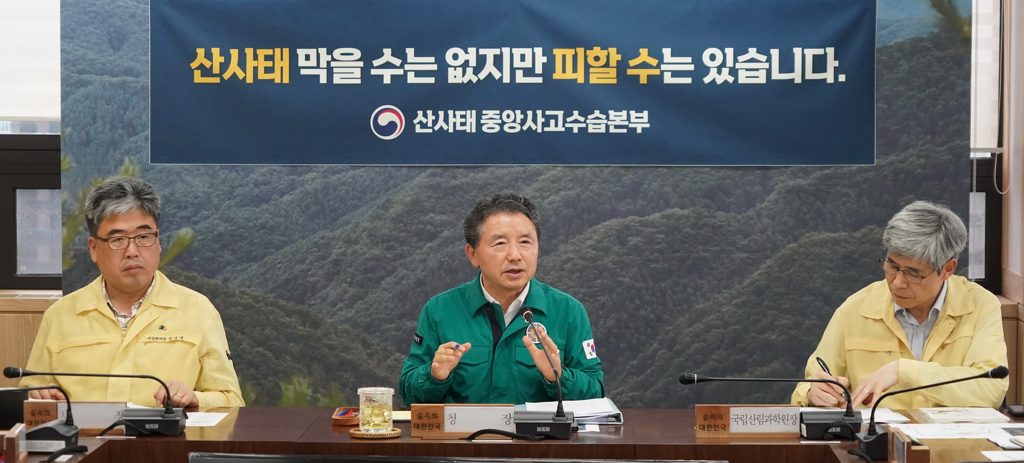 산림청은 지난 15일 산사태중앙사고수습본부(본부장 산림청장)를 본격 가동하고, 17일 산림청 상황실에서 산림분야 관계기관 대처상황 점검회의를 개최하였다. 회의에서는 피해 현황 및 대처상황을 점검하고, 주민통제·사전통제 등 인명피해 최소화 방안을 긴급 논의하였다.