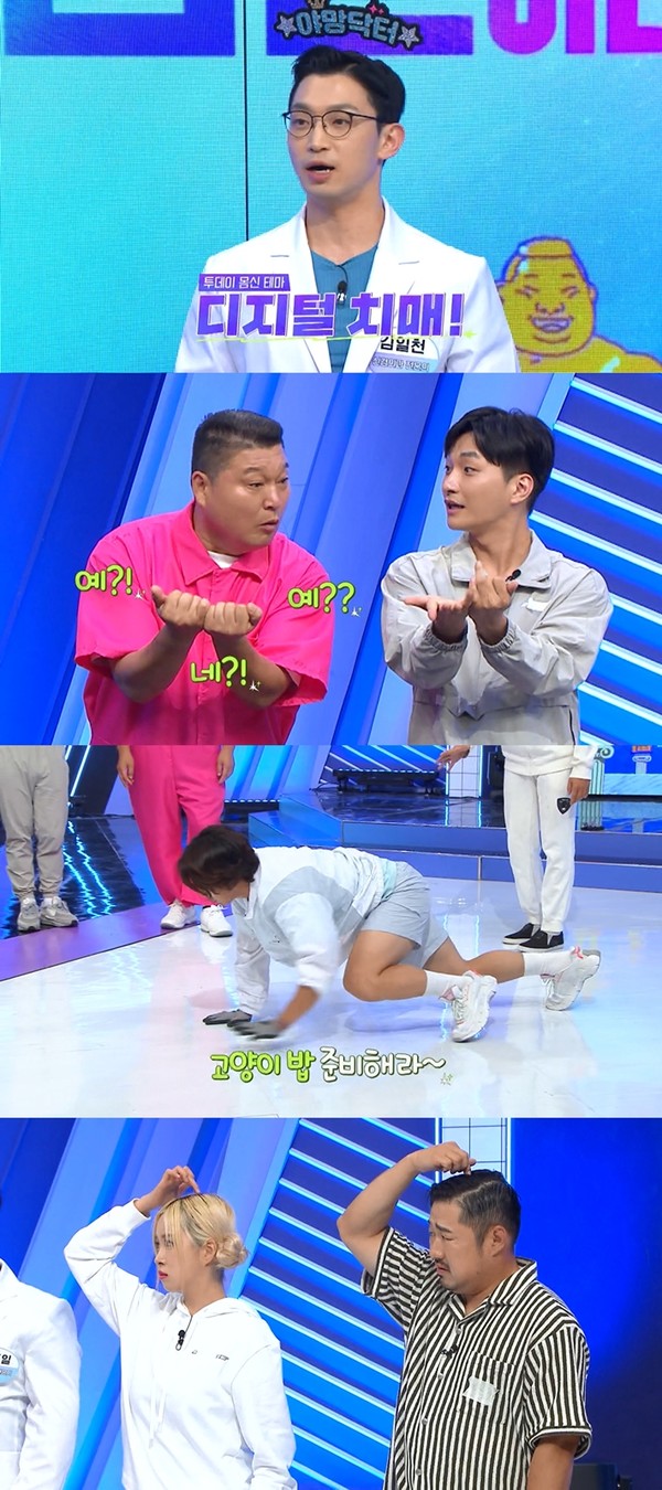 먼저 ’거미맨‘ 몸신은 네발 걷기 비법으로 이목을 사로잡는다. 이를 배운 김일천 신경과 전문의는 ”뇌 신경세포를 자극해 활성화 시킬 수 있어 치매 예방에 좋을 거 같다“라며 극찬한다.