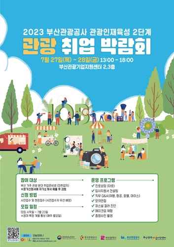부산광역시와 부산관광공사(이하 공사)는 문화체육관광부와 한국관광공사의 지원으로 관광인재육성과정 프로그램 '2023 관광 분야 취업 박람회(이하 박람회)'를 오는 27일부터 28일까지 양일간 부산관광기업지원센터(이하 센터)에서 개최한다고 19일 밝혔다.