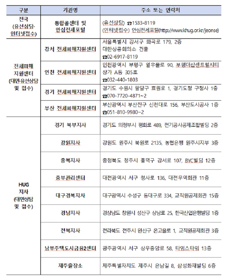 위원회 의결을 거쳐 피해자로 결정된 자는 HUG(주택도시보증공사) 전세피해지원센터 및 지사를 통해 지원대책에 대한 자세한 안내를 받을 수 있다.