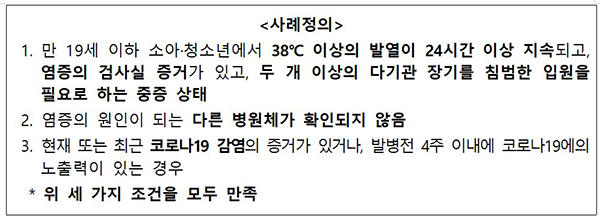 그러면서 “관련 학회 및 협회에 의료기관 내원·입원·퇴원 환자 중 다기관 염증증후군 의심사례를 확인할 경우에는 당국에 신고하도록 협조를 당부드렸다”고 밝혔다.
