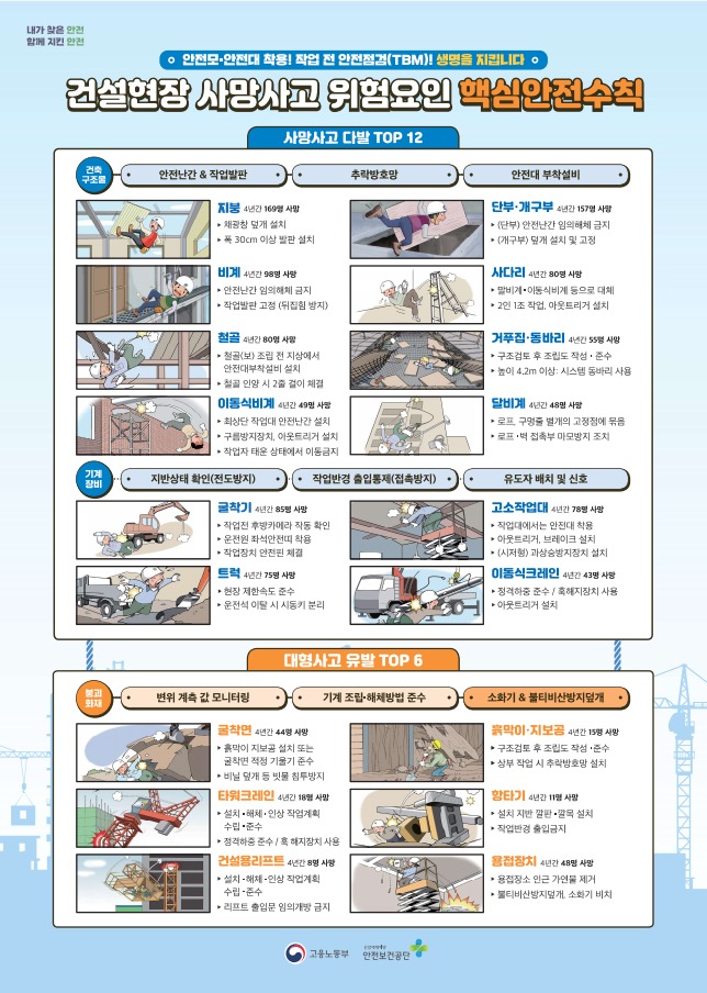 해당 현장은 중소 건설사(투탑건설, 건축 시공순위 2,120위)가 시공하는 중규모(50~800억) 현장으로 단부.개구부, 이동식비계, 사다리 등 사망사고 다발 위험요인은 물론 타워크레인, 건설용리프트, 동바리 등 대형사고 위험요인이 있었으며, 안전보건관리책임자(현장소장)와 전담 안전관리자가 선임되어 있었다.