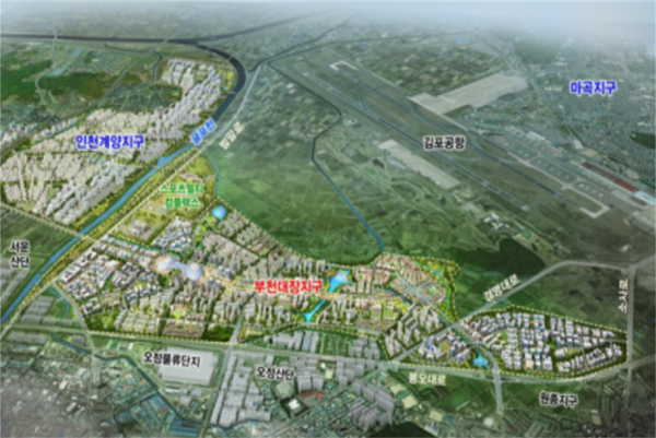 국토부는 부천 대장, 인천 계양 신도시가 완성되면 김포공항을 중심으로 서울마곡과 함께 수도권 서부권 산업벨트가 조성된다고 설명했다.