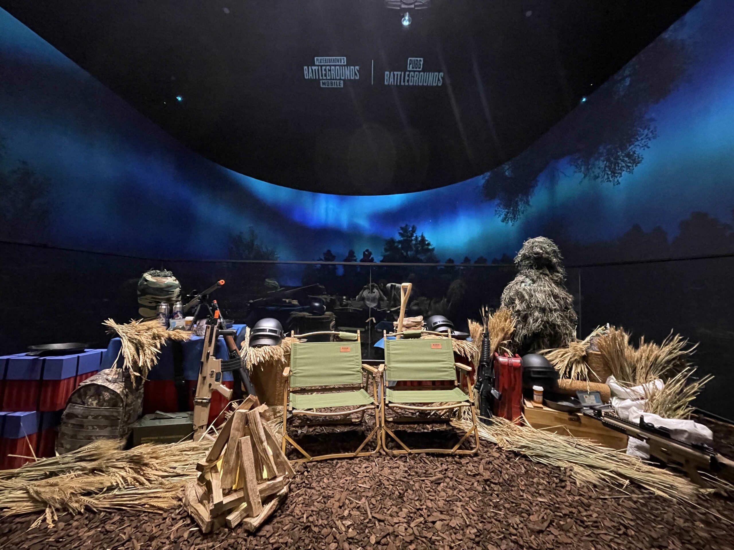 ‘배틀그라운드 in 성수’는 방문객이 현장에서 직접 배틀그라운드의 IP를 경험하고 경품도 받을 수 있는 오프라인 체험존이다. 대형 미디어월에서는 배틀그라운드의 다양한 미디어아트가 송출되며, 공간 곳곳에 배틀그라운드의 상징적인 아이템인 ‘삼뚝(3레벨 헬멧)’, ‘길리슈트’, ‘보급상자’ 등이 소품으로 비치돼 관람객이 게임 내 전장 속에 들어온 듯한 느낌을 받을 수 있다.