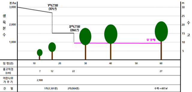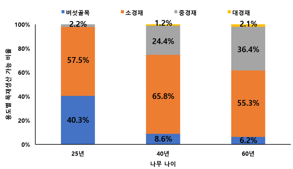 특히, 생산되는 나무의 크기에 따라 차별화된 산림관리를 적용하면, 계획적인 생산체계 구축으로 관리비용 절감과 산주 소득 증대에도 도움이 될 것으로 전망된다.