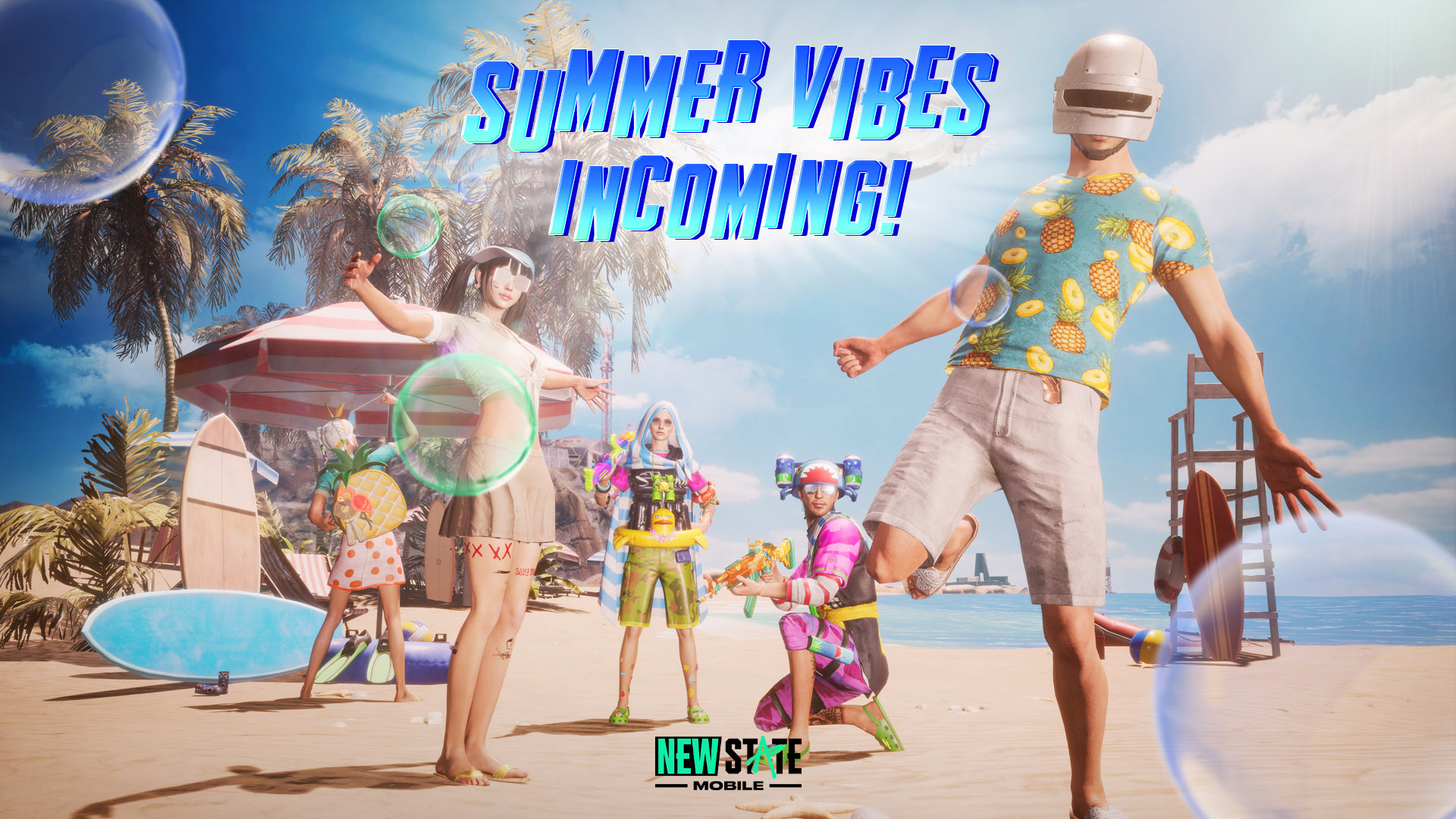 여름 시즌을 맞아 7월 20일부터 8월 23일까지 ‘뉴스테이트 모바일 썸머 페스티벌’ 빙고 이벤트가 진행된다. 일일 미션과 누적 미션을 수행하면 빙고 티켓을 획득할 수 있는데, 빙고를 완성하면 코스튬, 총기 스킨, BP 등 다양한 보상을 획득할 수 있다.