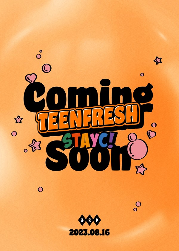 공개된 포스터에는 싱그러운 오렌지색 배경 위로 귀엽고 아기자기한 무드의 앨범명 ‘TEENFRESH’ 타이포그래피가 담겨 있다. 여기에 ‘Coming Soon (커밍순)’이라는 글귀가 조화를 이루며 곧 다가올 스테이씨 컴백에 기대감을 높였다.