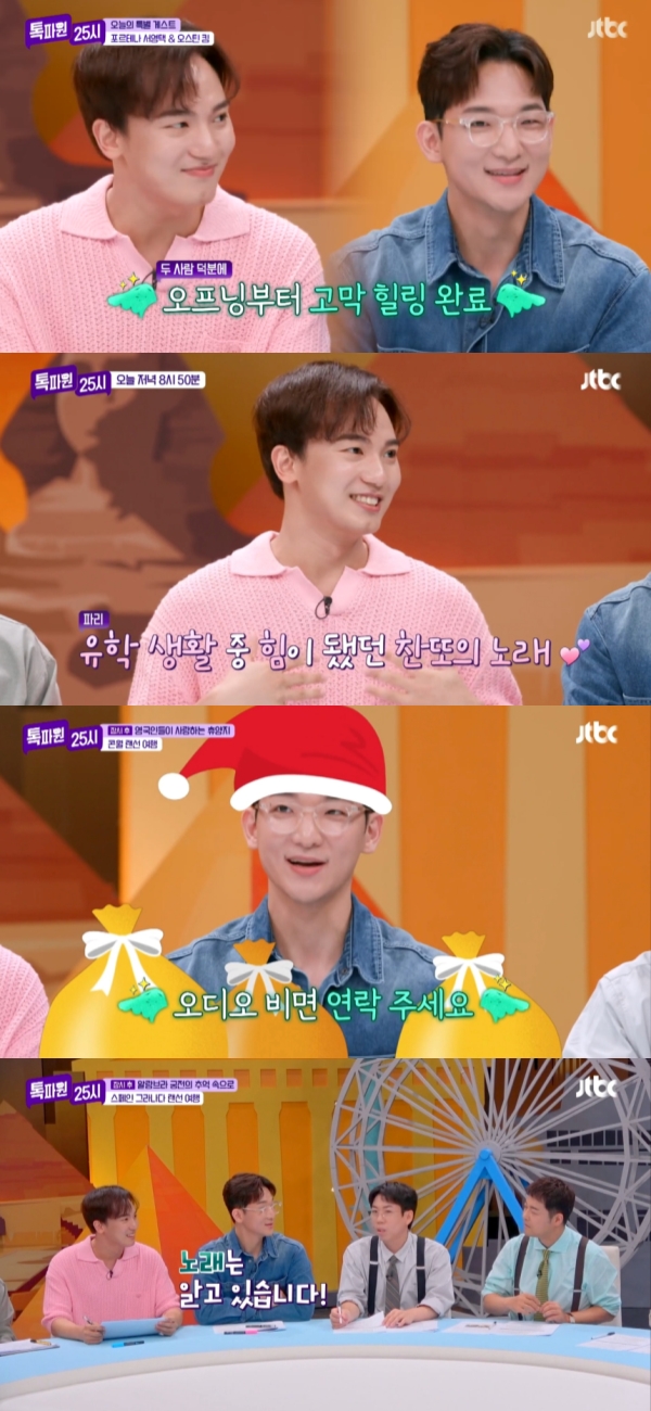 지난 24일 저녁 방송된 JTBC '톡파원25시'에 '팬텀싱어4'의 준우승팀 포르테나 오스틴킴과 서영택이 출연했다. 이날 방송에서는 캐나다 밴쿠버, 태국 후아힌, 영국 콘월, 스페인 그라나다 4개국 4색 랜선 여행이 펼쳐지며 다채로운 시간을 선사했다.