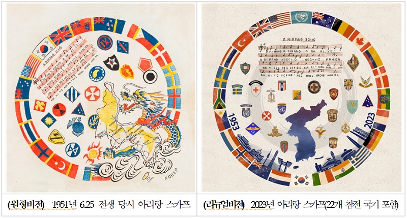 박민식 국가보훈부 장관은 “정전 이후 놀라운 발전을 이룬 대한민국의 현재는 70년 전 유엔참전국과 참전용사들의 헌신과 희생에서 비롯됐다”며 “아리랑 스카프는 동맹국의 위대한 연대를 알리는 상징물로 70년 동안 이어온 국제사회의 헌신에 감사드리기 위해 복원했다”고 말했다.