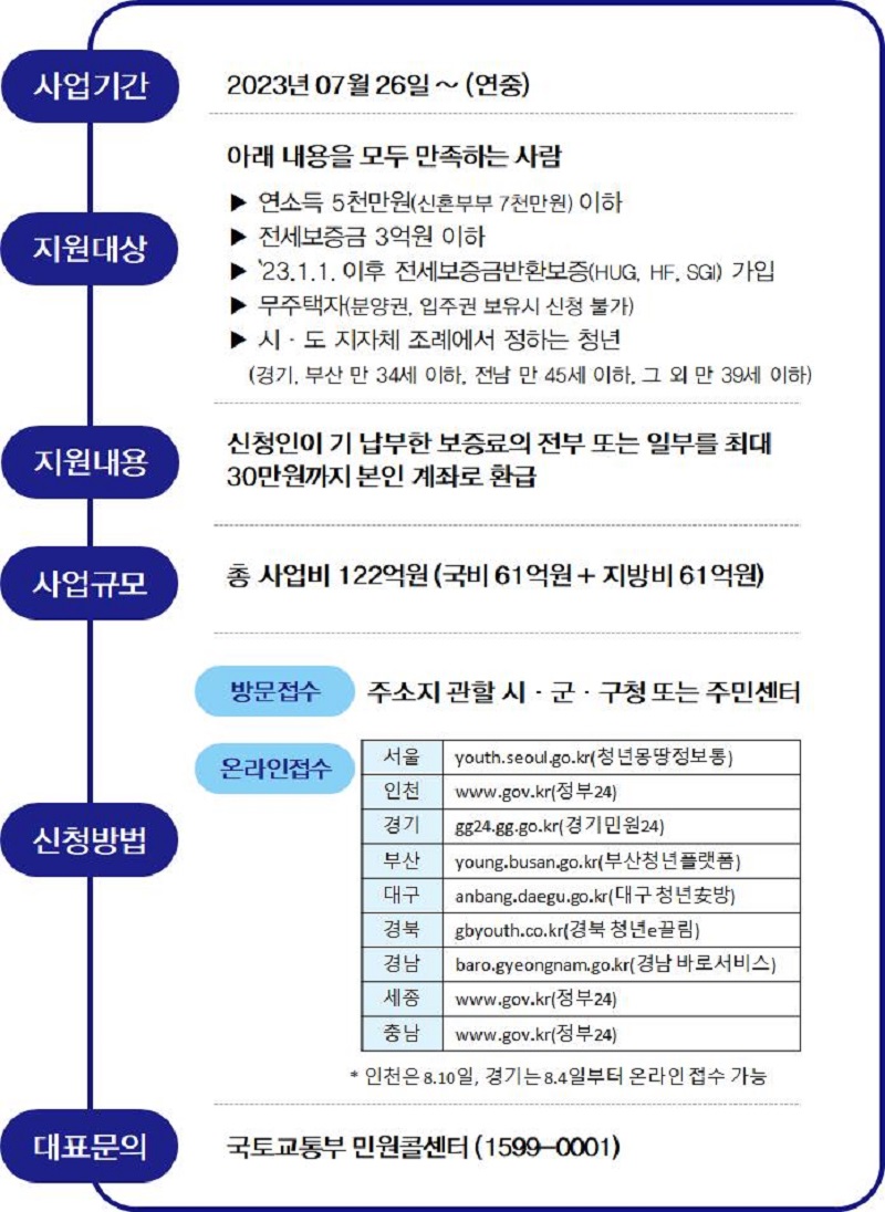 대상자 요건, 접수처 등 구체적인 사항은 국토교통부 민원 콜센터(☎1599-0001)에 문의하면 된다.
