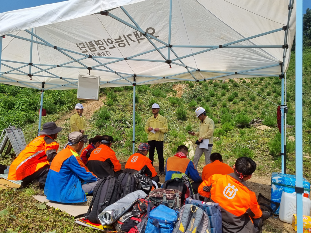 이번 점검은 여름철 안전사고 예방을 위해 근로자 휴게시설 설치, 구급약품 비치, 작업 전 안전교육 실시 등 안전관리계획서 이행 여부를 집중적으로 점검하고, 작업원을 대상으로 안전교육도 실시하였다. 또한, 최근 집중호우로 인한 작업로 피해 여부 및 산사태 취약지역에 대한 점검도 병행하였다.