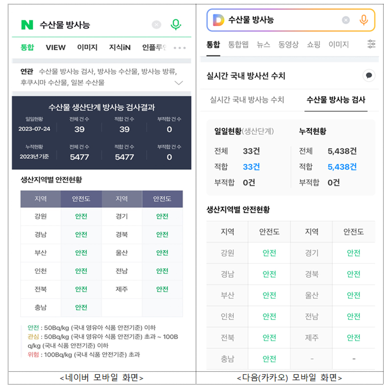 앞으로 주요 인터넷 포털사이트에서도 수산물 방사능 안전정보를 간편하게 확인 가능해진다.