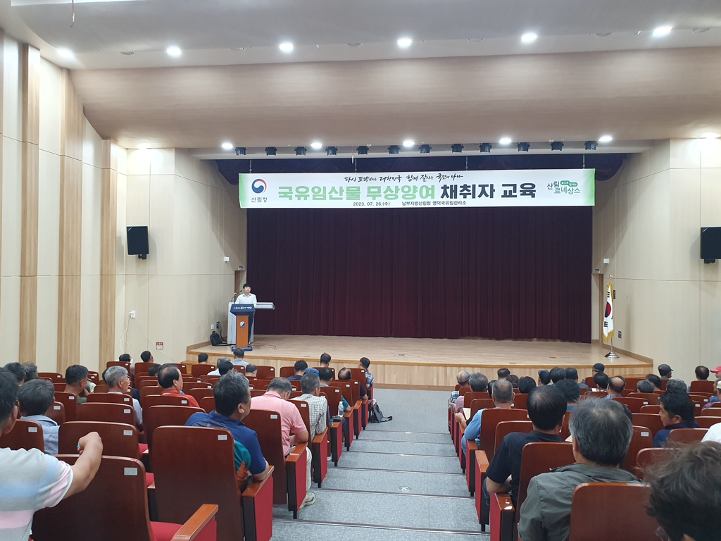 영덕국유림관리소는 2023. 07. 26.(수) 영덕로하스수산식품센터 2층 대강당에서 국유림 보호협약 대표자 등 94개 마을 100여명을 대상으로 국유임산물 무상양여 채취자 교육을 실시했다.