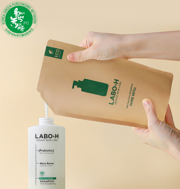 아모레퍼시픽의 '라보에이치 두피강화 샴푸 리필' 제품이 '2023 대한민국 올해의 녹색상품'에 선정됐다.