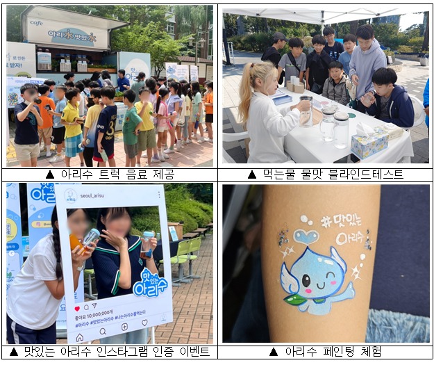 시민들에게는 아리수 트럭에서 시원한 아리수와 아리수로 만든 커피, 아이스티 등 음료를 제공하고, 아리수와 생수 물맛 블라인드테스트, 아리수 페인팅, 아리수를 먹는 모습 인스타그램 인증 이벤트, 수돗물 수질검사 시연 및 무료 신청 등 다양한 체험 프로그램도 진행한다.