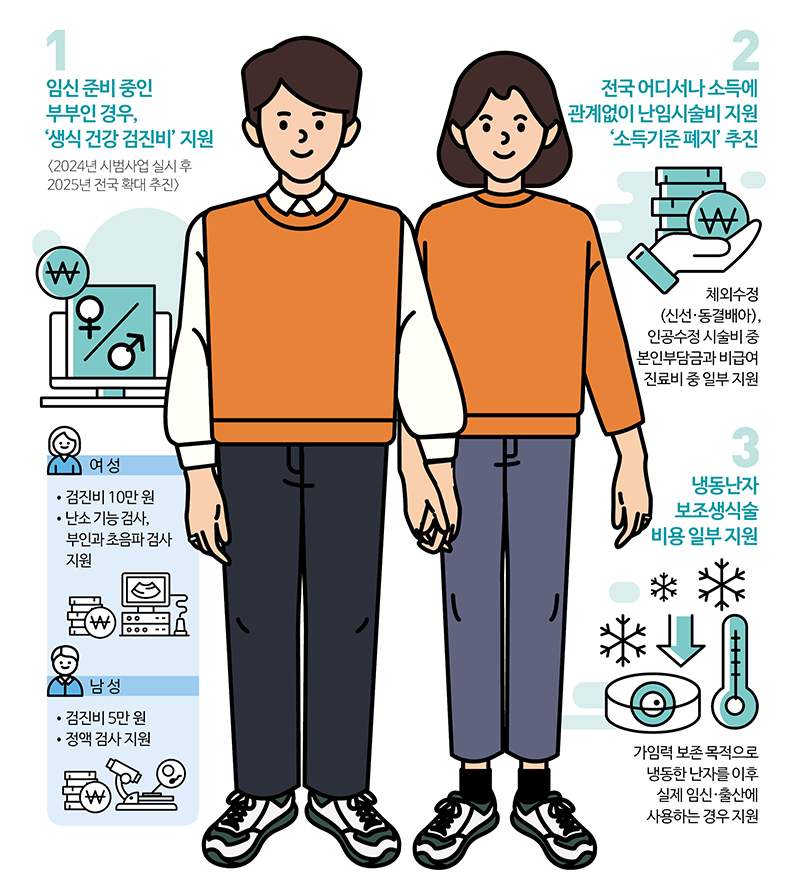 이에 내년부터 임신을 준비 중인 부부 등에 대해 필수 가임력(생식건강) 검진비를 지원하는 시범사업을 실시하고 2025년에는 이를 전국으로 확대한다.