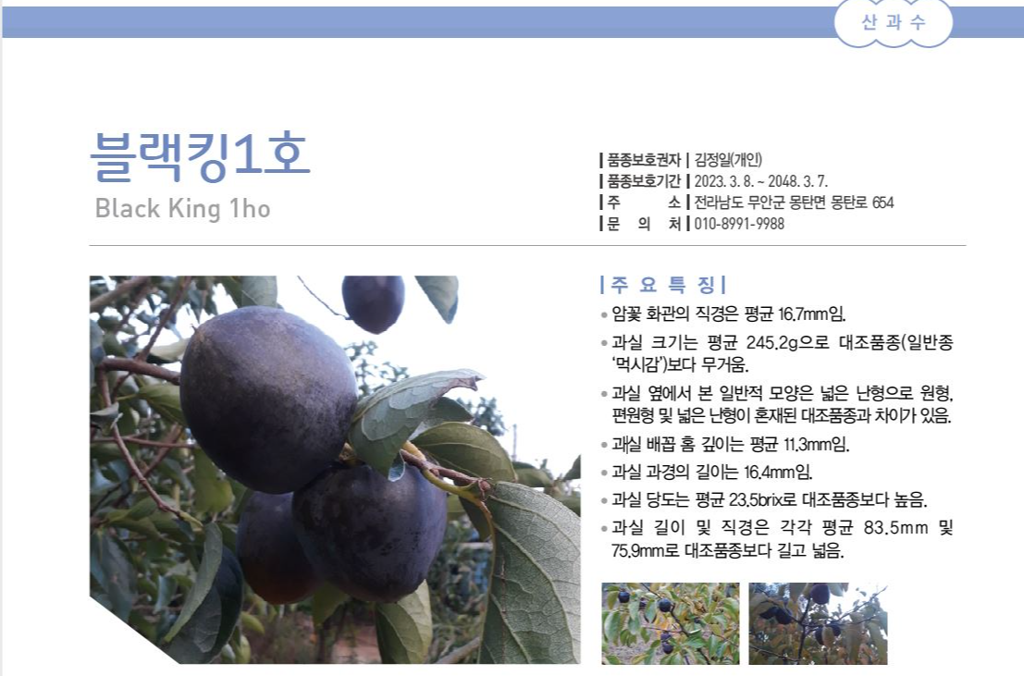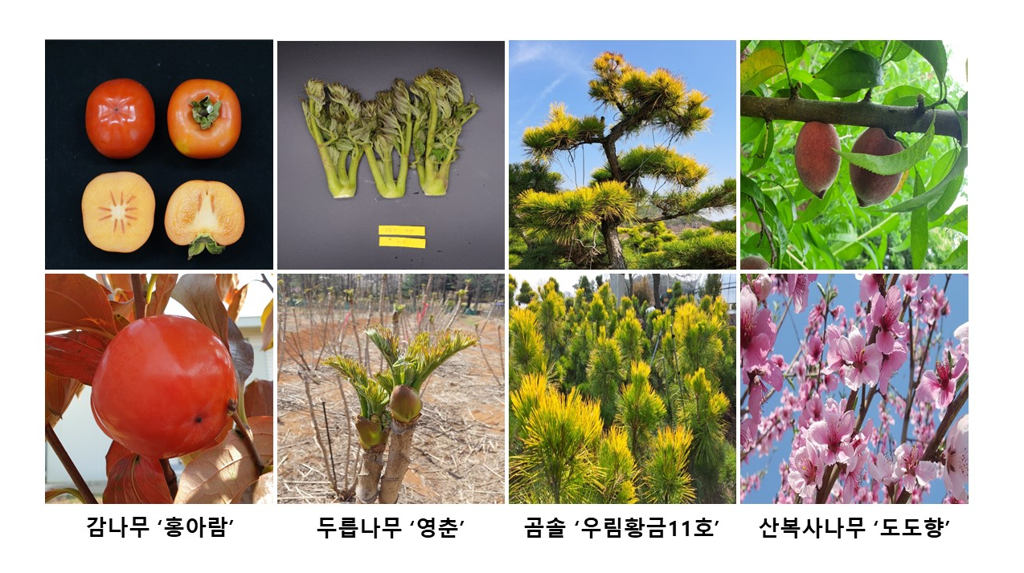 이번에 새로 선보이는 신품종으로는 열매의 색이 검은색인 감나무 ‘블랙킹1호’, 황금색 잎을 가진 곰솔 ‘우림황금11호’, 남부지방의 정원수로 유명한 굴거리나무 ‘금이’, 약복숭아라고 불리는 산복사나무 ‘도도향’ 등 각양각색의 특징을 지닌 수종들이 포함되었다.