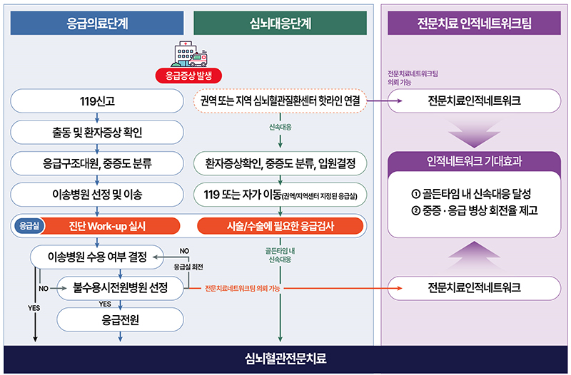 특히 이송 시간을 단축하기 위해 치료 역량이 있는 전문의들의 진료 협력체계를 지원하는 심뇌혈관질환 인적 네트워크도 도입한다.
