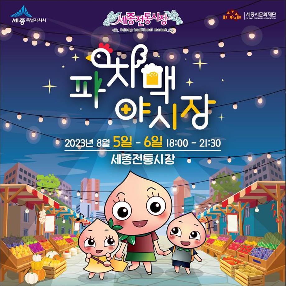 세종특별자치시는 오는 5일부터 6일 18시부터 21시 30분까지 조치원읍 세종전통시장 내 중앙통(새내10길 일대)에서 ‘파치맥 야시장’을 연다고 1일 밝혔다.