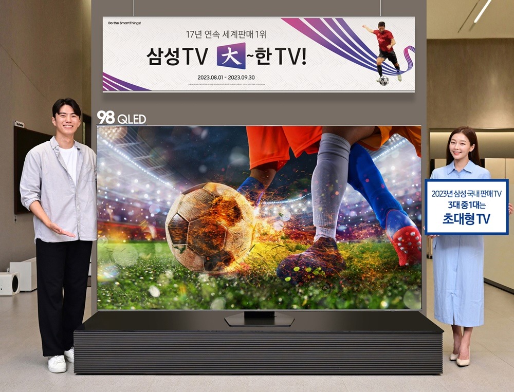 삼성전자는 국내외 프로 스포츠 리그, 국가 대항 스포츠 빅 이벤트 등 다양한 스포츠 축제를 앞두고 압도적인 화질로 스포츠 관람의 몰입감을 높이는 대형 TV를 대상으로 ‘삼성 TV, 大~한 TV’ 프로모션을 진행한다.
