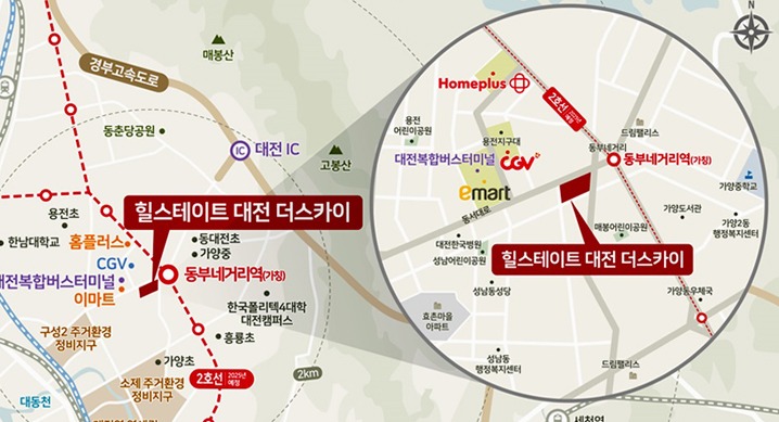 힐스테이트 대전 더스카이는 대전 복합터미널은 물론, 인근에 위치한 경부고속도로 대전IC와 대전역 등 광역교통망의 수혜를 가장 크게 누릴 수 있는 주거단지로 주목받고 있다.