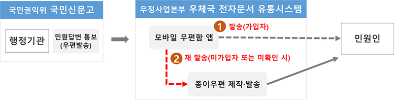 우체국 전자문서 서비스는 기존 국민신문고의 통지방식 중 하나인 우편 통지방식을 전자문서로 확대 개선한 것이다.