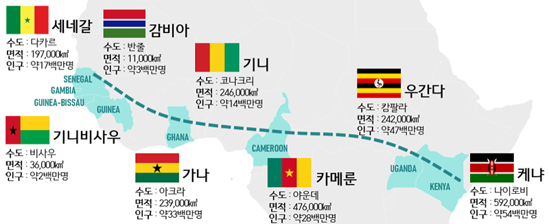 대상국가는 ▲(서아프리카) 세네갈·감비아·기니·기니비사우·가나 ▲(중앙아프리카) 카메룬 ▲(동아프리카) 우간다·케냐 등 8개국이다.