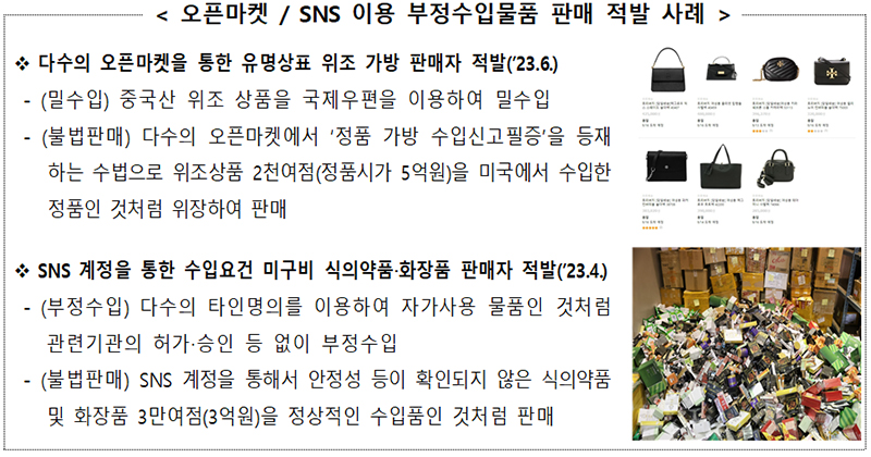 한편, 관세청은 지난 2020년부터 온라인상에서 부정수입물품의 유통을 방지하고 소비자 피해를 예방하기 위해 오픈마켓 등 통신판매중개업자를 대상으로 ‘부정수입물품 유통실태 조사’를 실시하고 있다.
