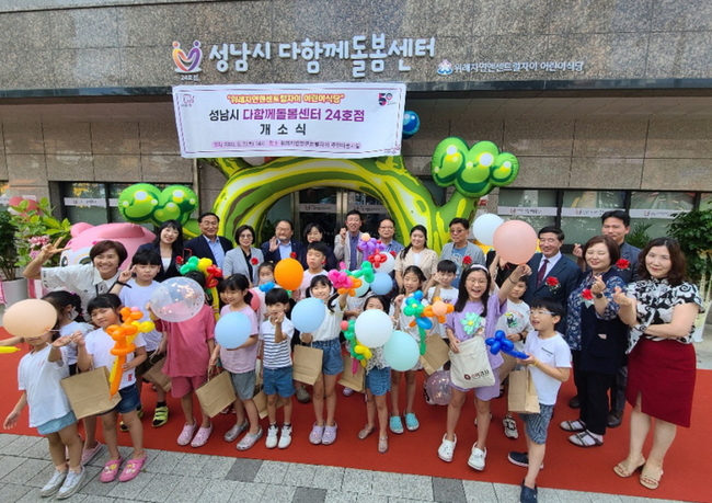 성남시는 수정구 위례자연앤센트럴자이 아파트 내 주민공동시설 1 층에 ‘ 다함께 돌봄센터 24 호점 ’ 개소식을 3 일 오후 2 시 위례동 주민과 이용 아동 등 50 여 명이 참석한 가운데 열었다 .
