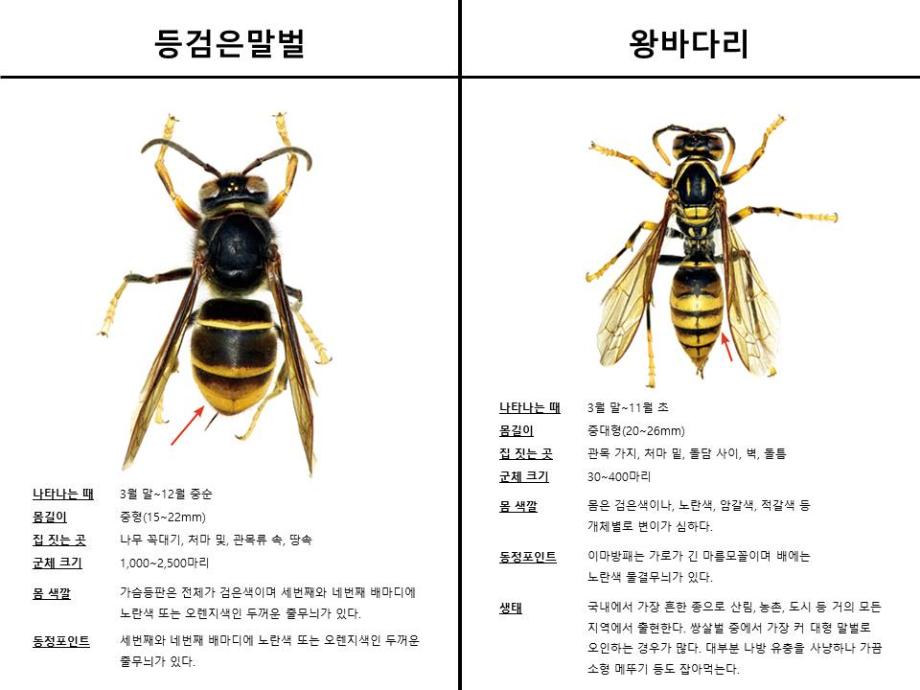 특히 등검은말벌은 공격성이 강하므로 각별한 주의가 필요하다.