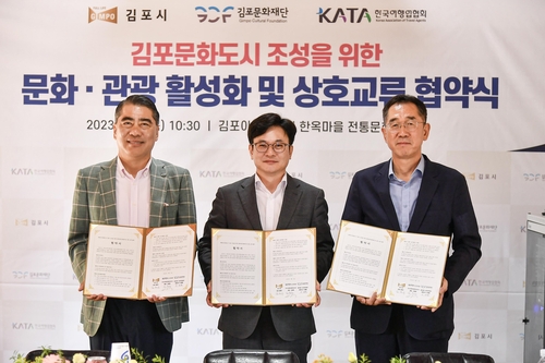 김포시와 김포문화재단은 지난 3일 김포아트빌리지 전통문화체험관에서 한국여행업협회와 '문화도시 김포 조성을 위한 업무협약'을 체결했다.