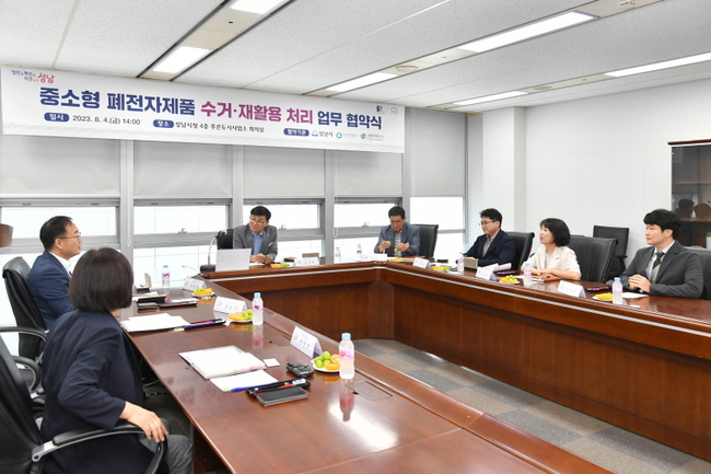 성남시는 4 일 오후 2 시 한국환경공단 , E- 순환거버넌스와 중소형 폐전자제품 수거 및 재활용 처리를 위한 사물인터넷 (IoT) 수거함 시범사업 업무협약을 체결했다.