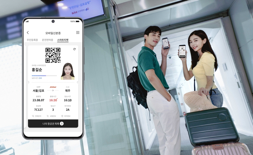 ‘PASS스마트항공권’은 PASS 모바일신분증(주민등록증 모바일 확인서비스, 모바일운전면허 확인서비스)과 국내선 탑승권을 결합해, PASS 앱 내에서 QR코드를 생성하고, 비행기 탑승 과정에서 이를 제시하고 인증하는 방식이다.