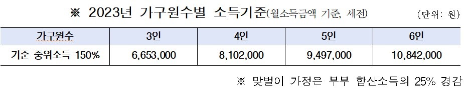 ‘서울형 아이돌봄비’ 지원 대상은 24개월 이상 36개월 이하('23.10. 기준)의 아이를 키우며, 맞벌이 등 양육 공백이 있는 중위소득 150%(3인 가구 기준 월 665만 3,000원)이하 가구이다. 친인척 육아 조력자의 범위는 돌봄 아이를 기준으로 4촌 이내의 19세 이상 친인척이며, 타시도에 거주하는 경우에도 육아 조력자로 활동이 가능하다.