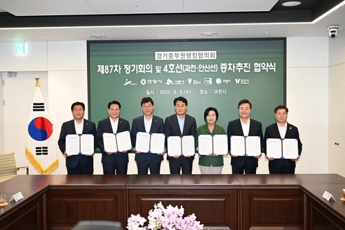 과천시는 9일 디테크타워 과천(과천대로7길 33)빌딩 '미래홀'에서 열린 경기중부권행정협의회 제87차 정기회의에서 안산·안양·시흥·광명·군포·의왕시와 4호선(과천·안산선) 증차를 위한 업무협약을 체결했다고 밝혔다.