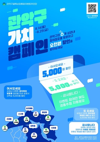 관악구가 높은 물가 속 여름 휴가철을 맞아 소상공인과 함께하는 '골목상권 이용촉진 통합이벤트'를 개시한다.